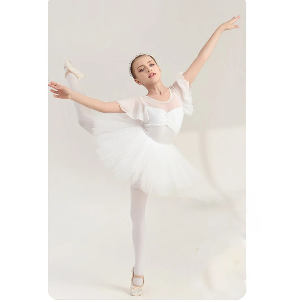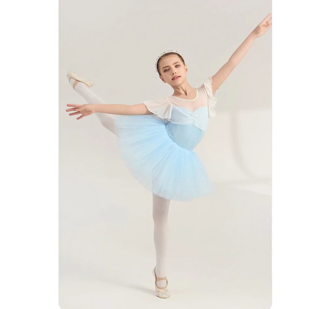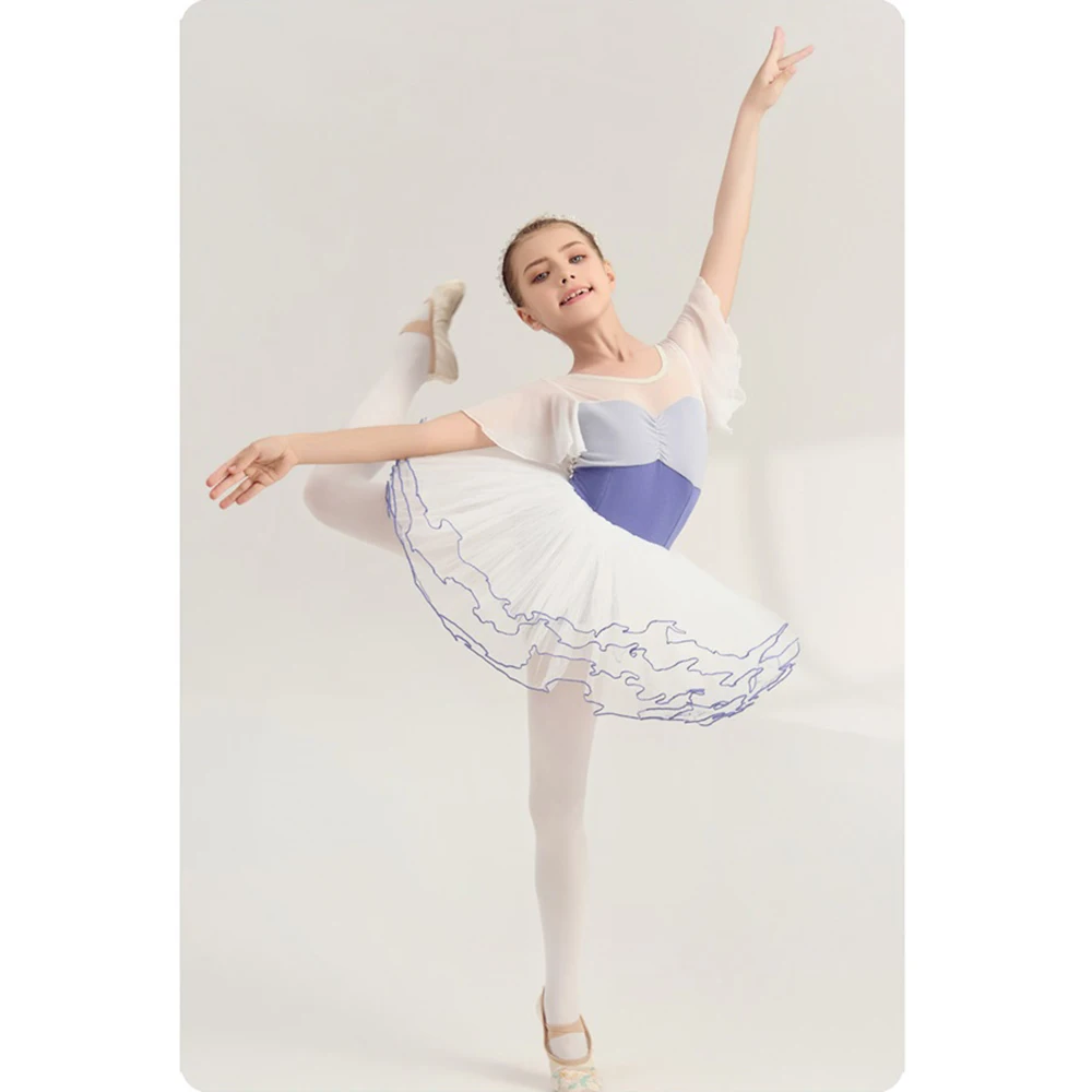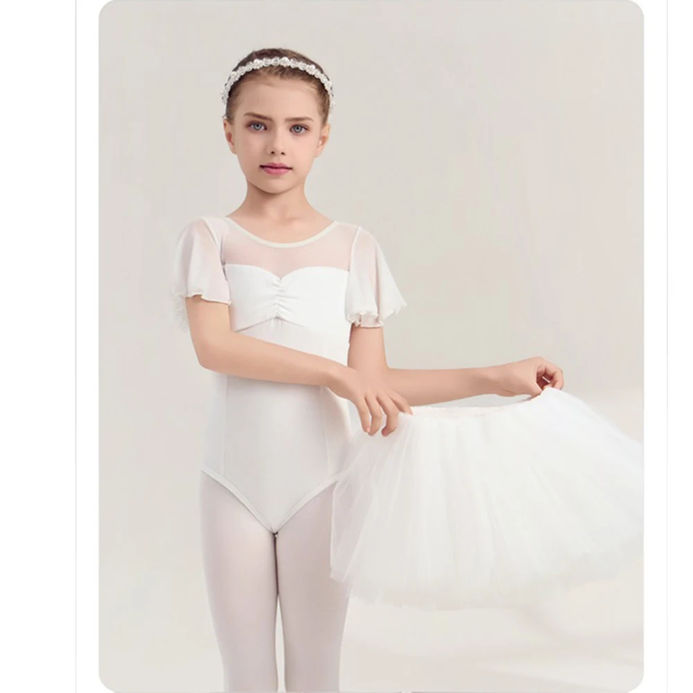 Girls' Soft Dance Leotards Gauze Elastic Splicing Cotton Ballet Ballroom Gymnastic Performance Training Clothes